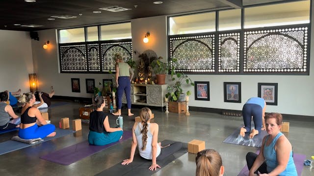 Fun props with spinal extensions, interesting leg work, a sweaty vinyasa sequence and a little bit of upside down options to boot.